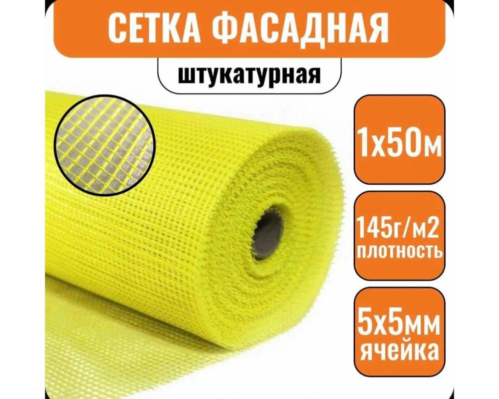 Сетка стеклотканевая №3 ФАСАДНАЯ желтая 145г/м² 1×50м, ячейка 5×5 — надёжное армирование фасадов! Высокая прочность, долговечность, устойчивость к УФ, доступная цена. Бесплатная доставка от 30тр по Сочи! Закажите сейчас на сайте или посетите магазин!