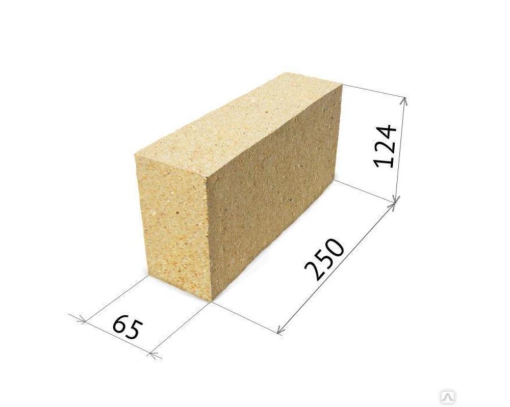 Характеристики: размеры 124х250х65 мм, марка ШБ-8, огнестойкость до 1650°C, вес 4.2 кг, на поддоне 350 шт.