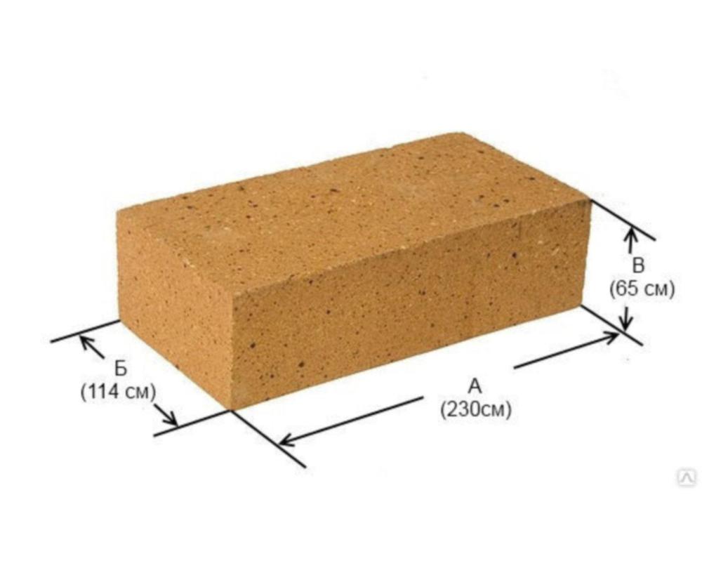 Характеристики: размеры 114х230х65 мм, марка ШБ-5, огнестойкость до 1650°C, вес 3.4 кг, на поддоне 350 шт.