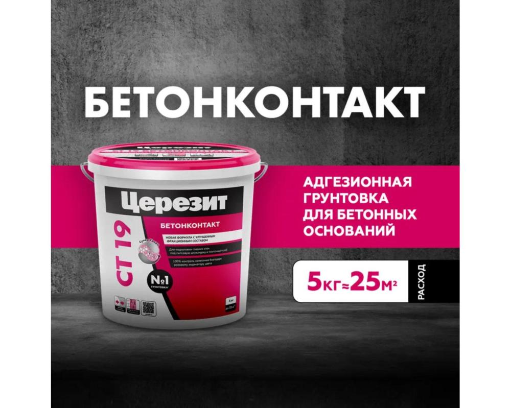 Бетонконтакт Ceresit CT-19 — профессиональная грунтовка для обработки бетонных оснований перед нанесением штукатурок и плиточных клеёв, обеспечивающая надёжное сцепление материалов.