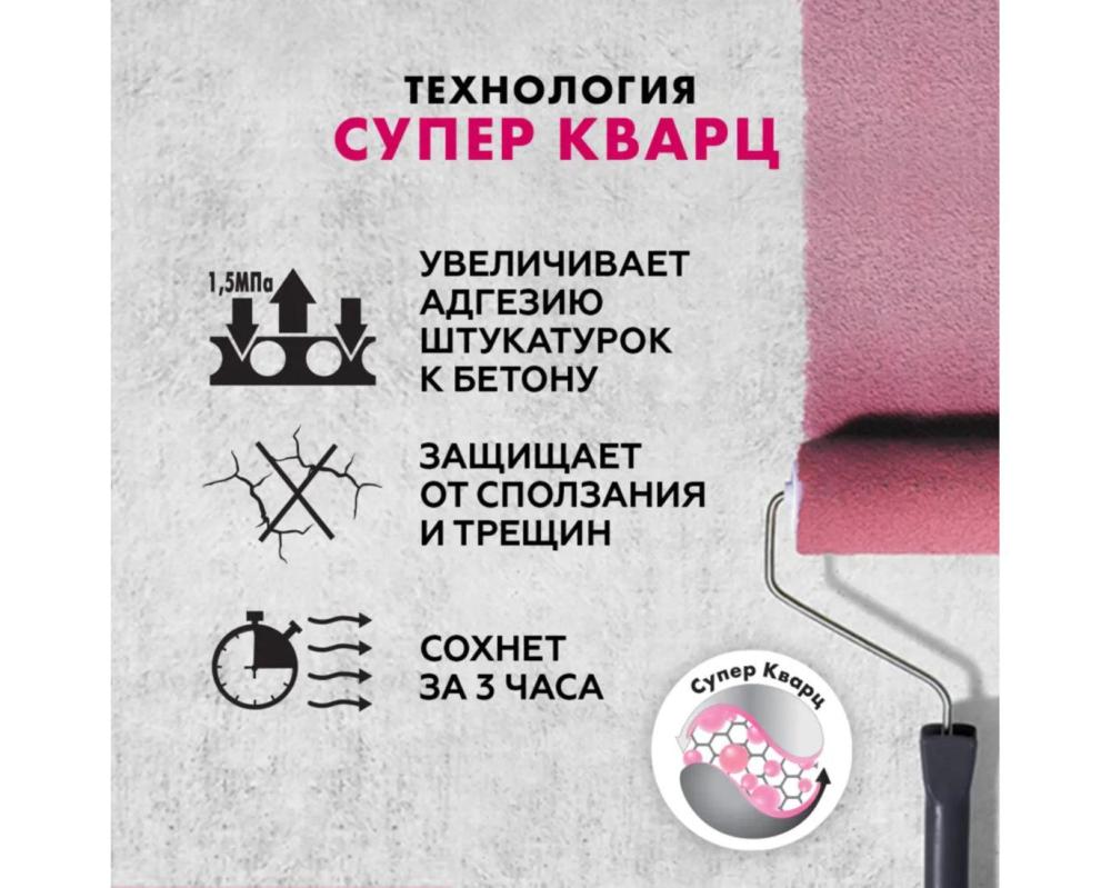 Ключевые преимущества: содержит кварцевый наполнитель, значительно повышает адгезию, экологически безопасна, готова к применению, розовый цвет для контроля нанесения.