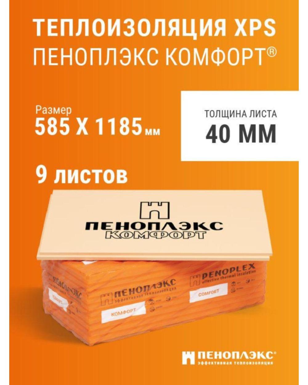 ПЕНОПЛЭКС КОМФОРТ XPS 1185×585×40мм, 9шт влагостойкий