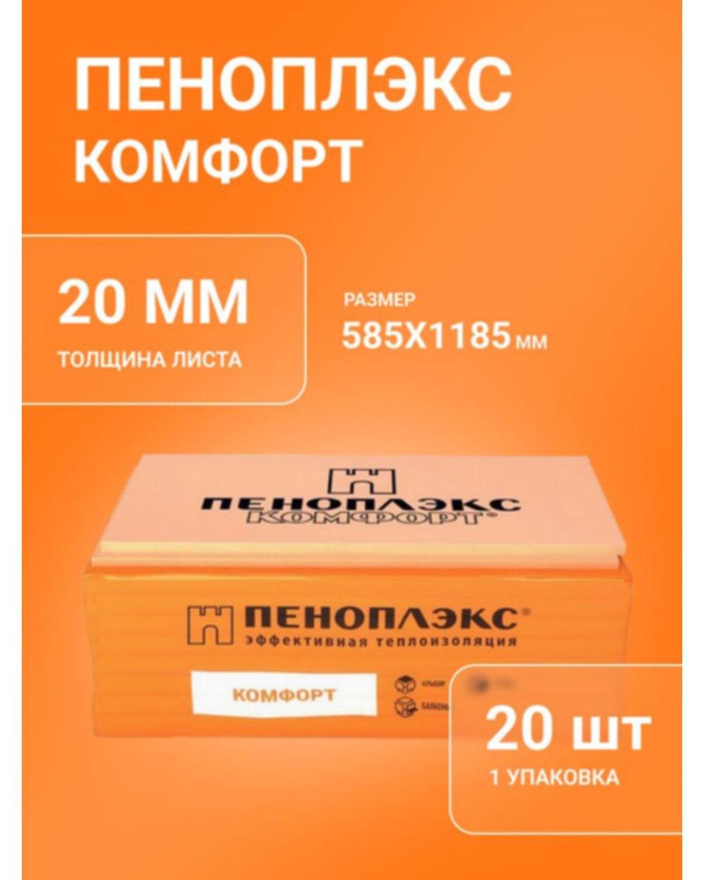 Экструдированный пенополистирол ПЕНОПЛЕКС КОМФОРТ 20мм (1185×585×20мм), 20шт. Группа горючести Г4. Площадь покрытия 13,86м². Эффективная теплоизоляция для дома. Бесплатная доставка от 30тр по Сочи! Закажите сейчас на сайте или посетите магазин!