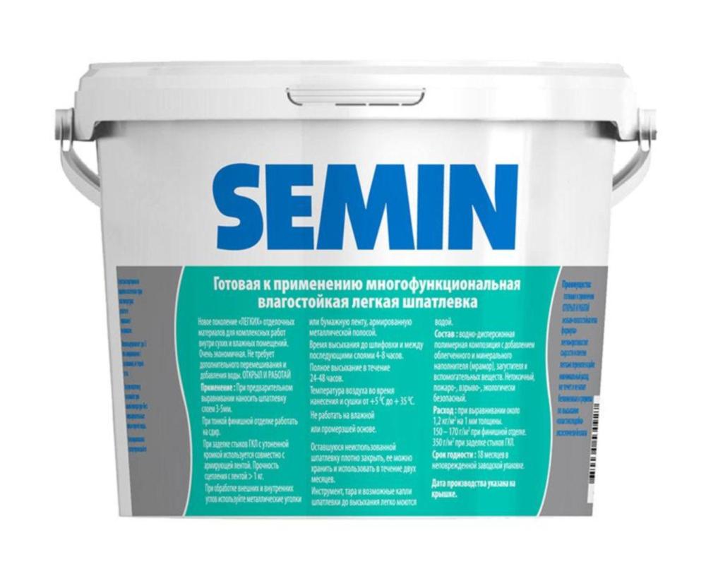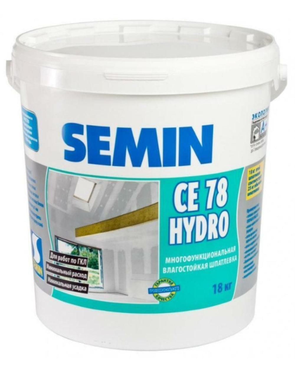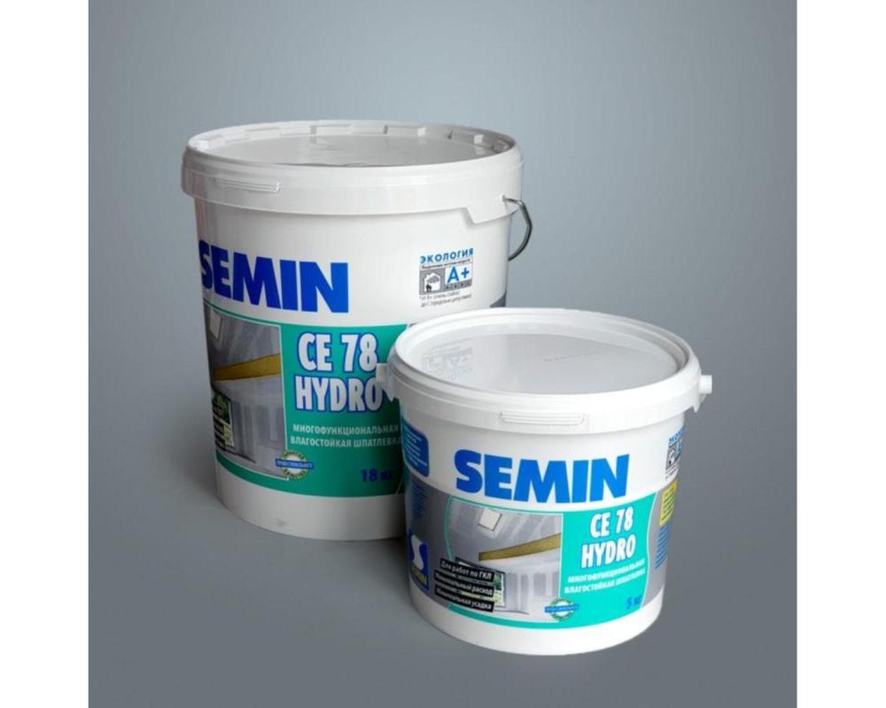 Шпатлевка SEMIN CE 78 HYDRO — готовый влагостойкий состав для комплексного ремонта помещений. Фасовка: 18кг, белый цвет.