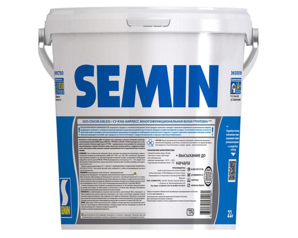 Грунт-краска SEMIN SOUS-COUCHE AIRLESS синяя 20кг — готовая грунтовка под обои, расход 150-250г/м². Для внутренних работ, паропроницаемая. Бесплатная доставка от 30тр по Сочи! Закажите сейчас на сайте или посетите магазин!