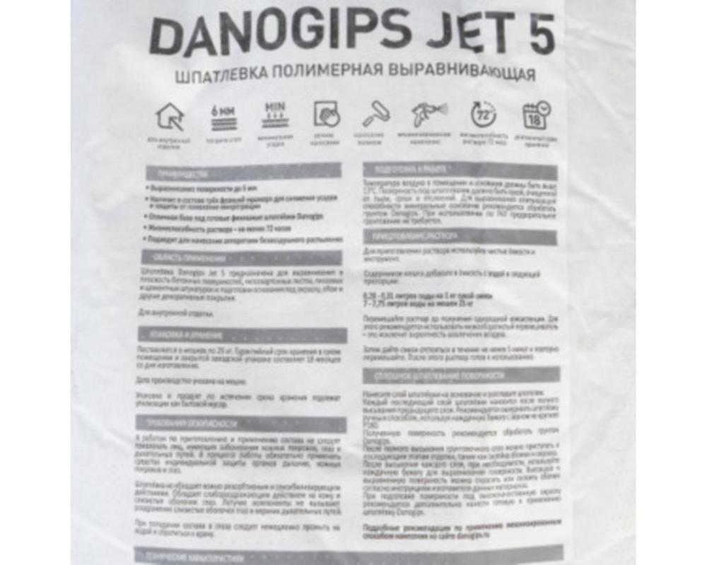 Шпатлевка Danogips DANO JET 5 — сухая полимерная смесь в упаковке 25кг для базового выравнивания поверхностей.