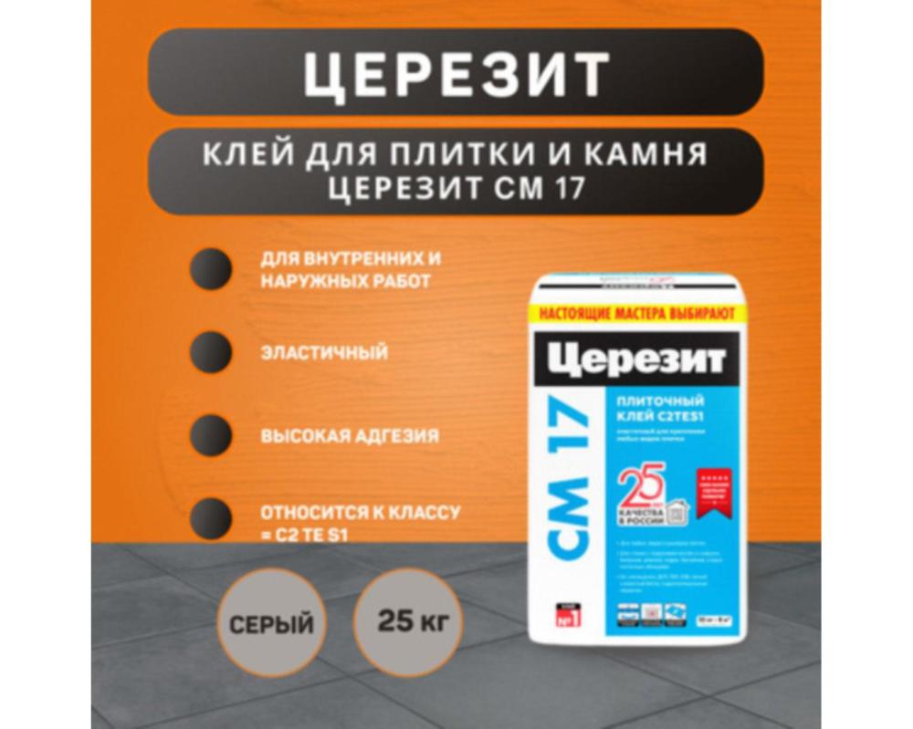 Цементный клей Ceresit CM-17 25кг — высокоэластичный для минеральной плитки. Для внутренних и наружных работ. Водостойкий, морозостойкий. Удерживает плитку до 1×1м. Бесплатная доставка от 30тр по Сочи! Закажите сейчас на сайте или посетите магазин!