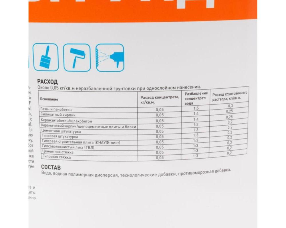 Применение: обработка газо- и пенобетона, керамического и силикатного кирпича, керамзито- и шлакоблоков, гипсовых и цементных штукатурок, бетонной и цементной стяжки.