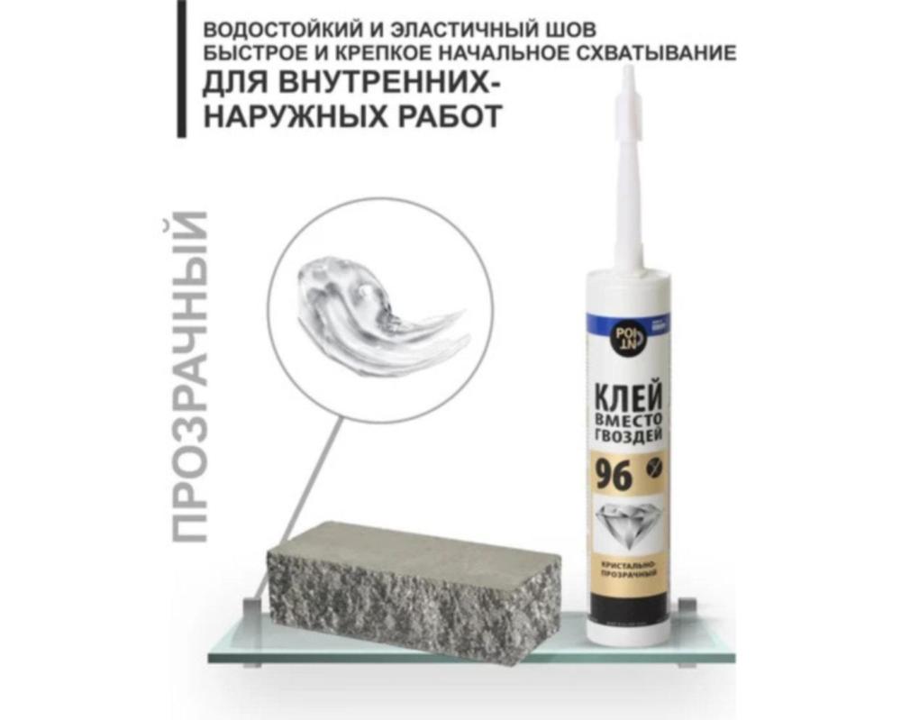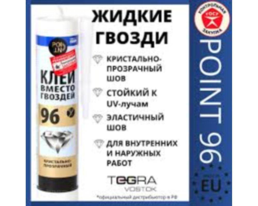 Клей POINT 96 вместо гвоздей, кристально-прозрачный 280мл (12шт) — универсальный монтажный клей для внутренних и наружных работ. Прочный, эластичный, водостойкий. Бесплатная доставка от 30тр по Сочи! Закажите сейчас на сайте или посетите магазин!