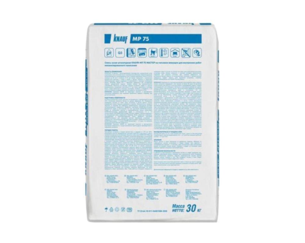 Штукатурка гипсовая КНАУФ-МП 75 25кг — для машинного нанесения внутри помещений. Гладкая поверхность без шпаклевания, высокая адгезия, расход вдвое меньше цементной. Бесплатная доставка от 30тр по Сочи! Закажите сейчас на сайте или посетите магазин!